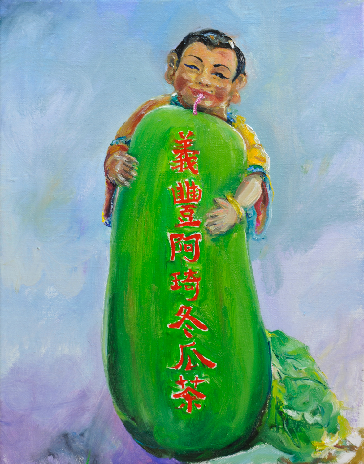 可愛的娃兒抱著大冬瓜