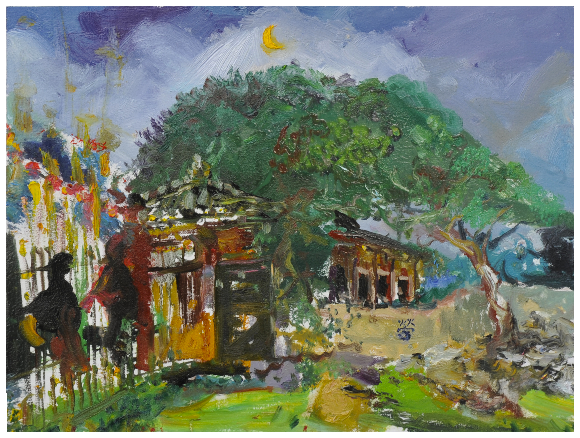 夜晚時分燈光明滅,窗櫺上剪影林立