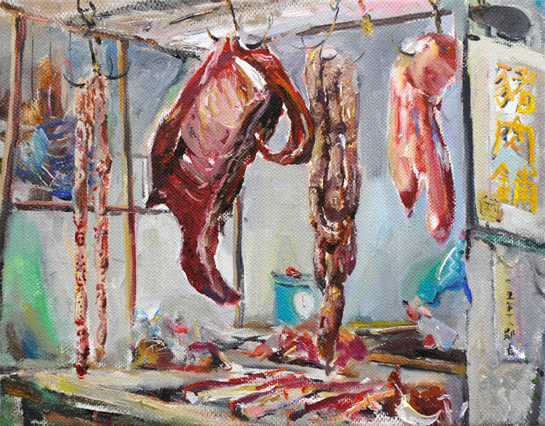 最有可能的是以前這兒有古市集,很喜歡這種傳統豬肉攤的親切感。